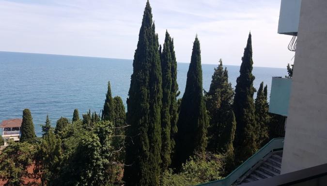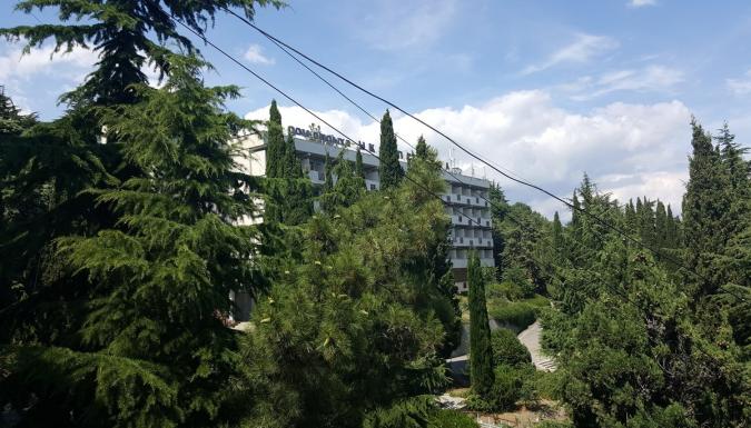Здравница расположилась в первой линии на 7 га роскошного парка с субтропическими растениями, который террасами поднимается от моря.