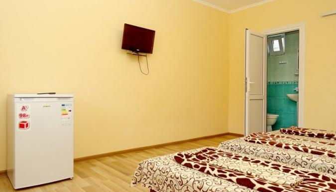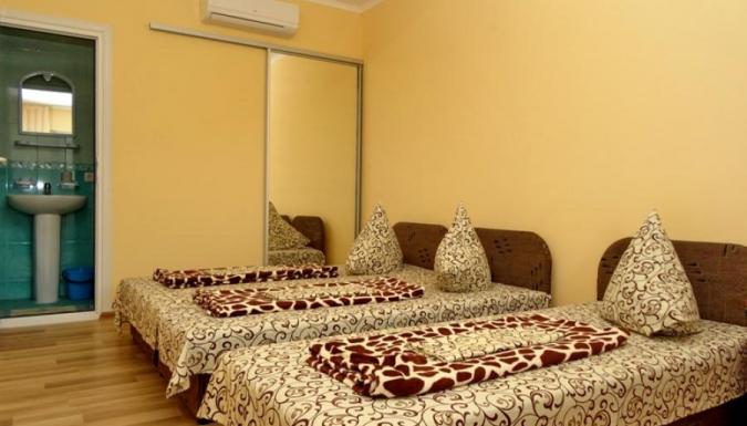 Отель расположен в 400 метрах от моря в районе аквапарка и предлагает просторные 2-3-х местные номера с кондиционером, современной мебелью, холодильником, телевизором и санузлом во всех номерах. Все номера с отдельным входом. Во дворике отеля можно приятно отдохнуть в беседках, есть мангал, барбекю.