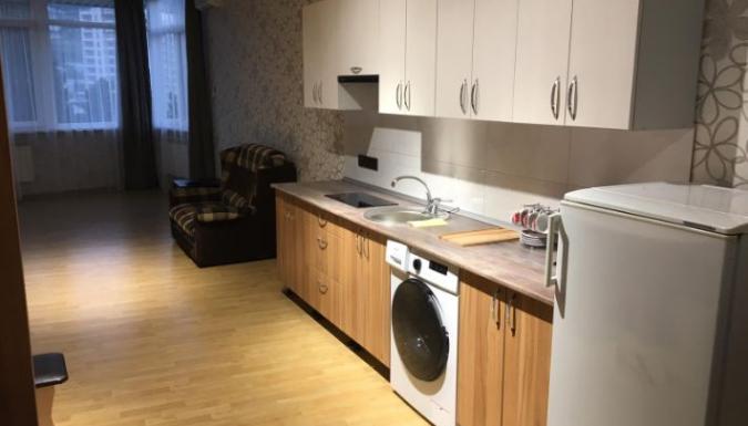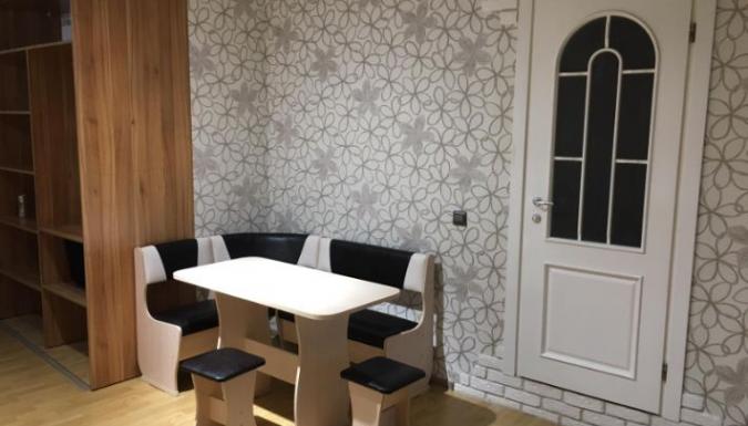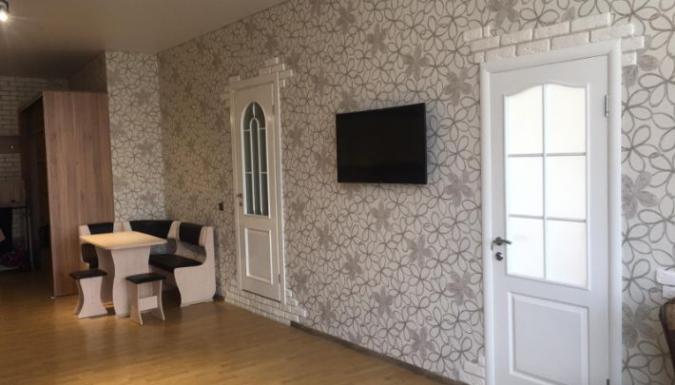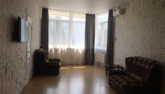 В одной комнате к вашим услугам: шкаф-купе, укомплектованная всей необходимой посудой кухня, двухспальный диван, кресло-кровать, стол, стулья, тв, холодильник, кондиционер, стиральная машина, гладильная доска, утюг, туалет, душевя кабина, умывальник и фен.