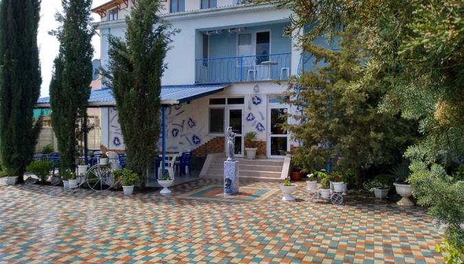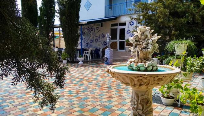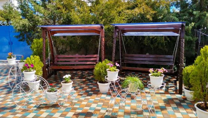 В зеленом дворике можно приятно отдохнуть в беседках, есть качели, так же в пансионате есть кухня где можно самостоятельно готовить. Бесплатный Wi-Fi