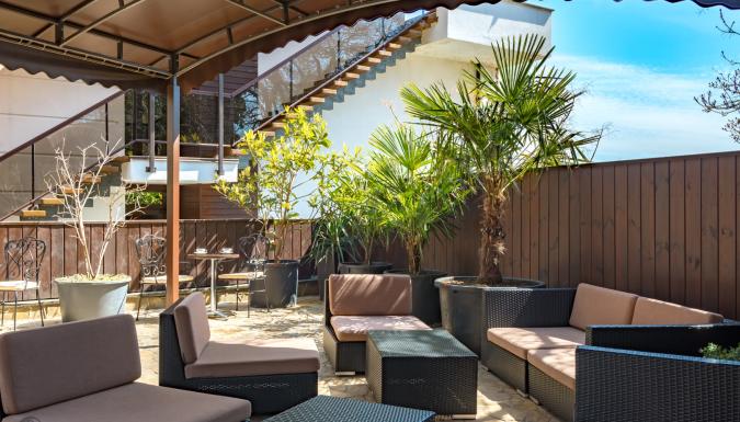 На территории отельного комплекса находятся три жилых корпуса на 37 номеров.