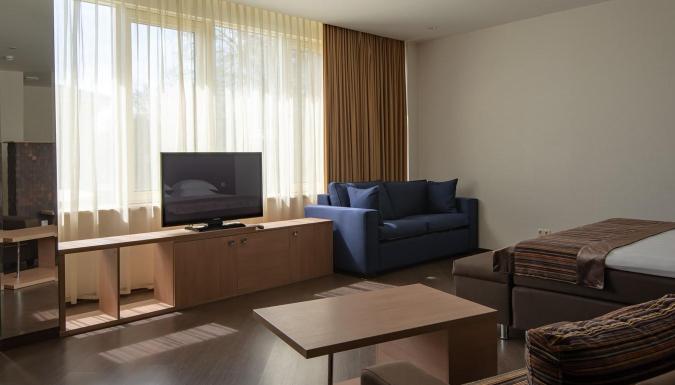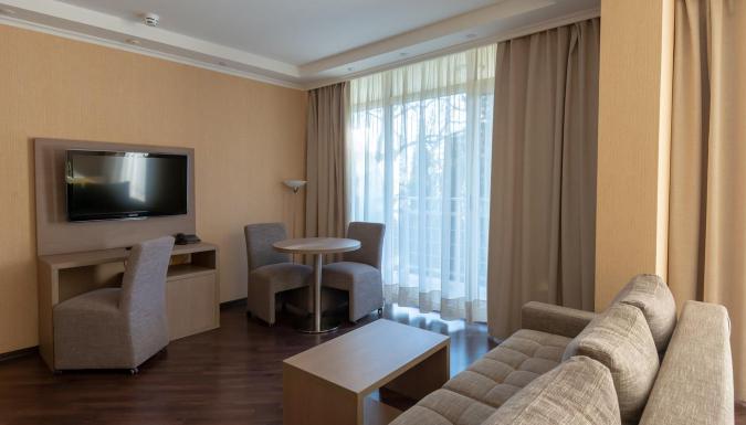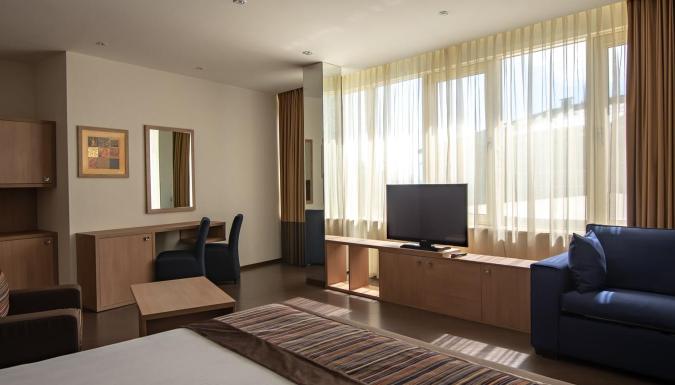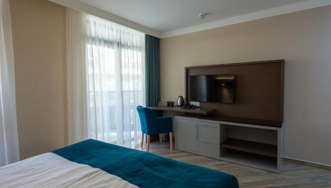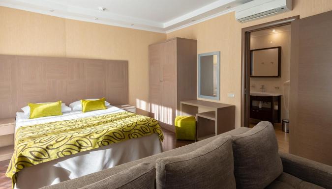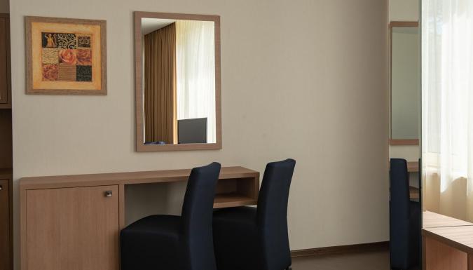 Номера разных категорий комфорта — есть как стандартные комнаты, а так и апартаменты, оборудованные кухней. В комнатах приятный лаконичный интерьер, выдержанный в пастельных оттенках, везде есть кондиционер, плазменный телевизор, санузел.