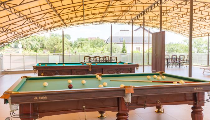 Крытый и открытый бассейн, тренажерный зал, бильярд, настольный теннис