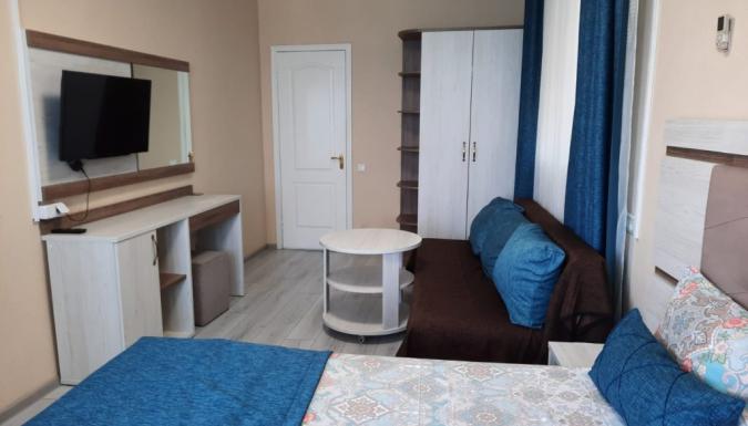 В распоряжении гостей комфортабельные номера с удобствами. В каждом есть собственная мини-кухня , оснащенная посудой и техникой (чайник, микроволновая печь, холодильник), а также кондиционер, плазменный телевизор и сеть wi-fi. Некоторые комнаты оборудованы небольшой меблированной террасой.