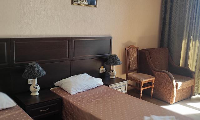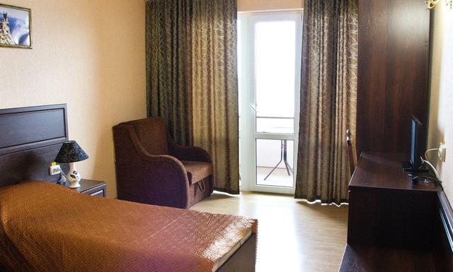 В 3-х этажном корпусе отеля расположены 15 комфортабельных однокомнатных номеров со всеми удобствами: шесть 2-х местных номеров категории «А», шесть 2-х местных номеров категории «В», три 2-х местных номера категории «С». Все номера категории А и В с прекрасным видом на море. Все номера с удобствами, везде есть кондиционер, телевизор и холодильник.