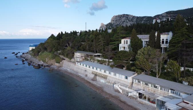 Отель расположен на первой береговой линии в 20 метрах от моря. Отель находится в пешей доступности от центра Симеиза, городской набережной, автовокзала, магазинов и кафе.Историческое здание гостиницы (три звезды) расположено на берегу и утопает в зелени старинного парка с экзотическими секвойядендронами гигантскими или мамонтовыми деревьями. А в 10 метрах от собственного пляжа находятся уютные аэрарии климатопавильоны с панорамным видом на море, скромные но имеющие свои преимущества.