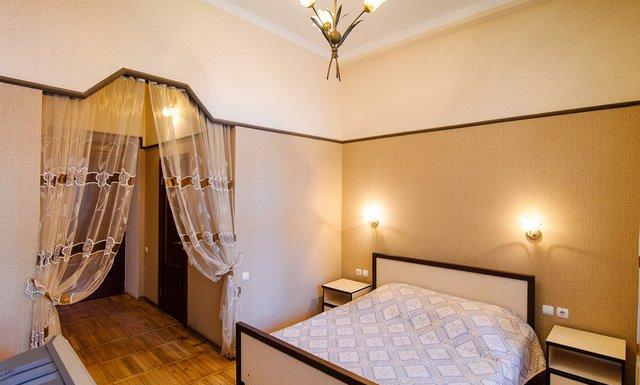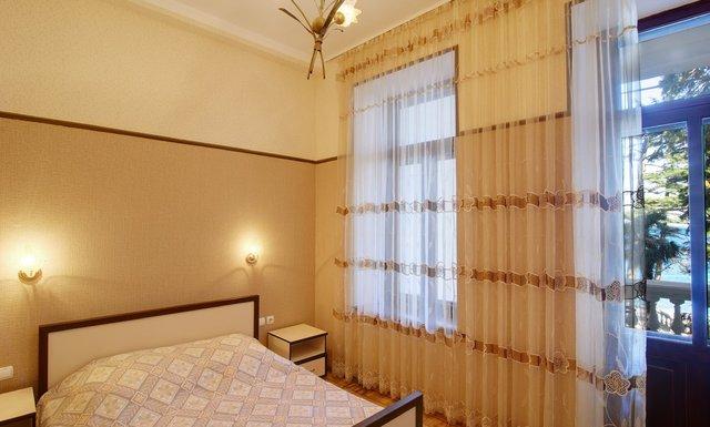 Для размещения гостей предлагаются номера категорий стандартный, улучшенный, полулюкс. Все они оборудованы удобствами, с высокими потолками, большая часть имеет прямой вид на море. Также в номерном фонде представлены номера с частичными удобствами, расположенные в климатопавильоне.