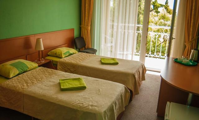 Индивидуальные террасы и комфортные двухкомнатные и однокомнатные номера, из которых открывается великолепный живописный вид на город, горы и ласковое море. Вокруг отеля - парковая зона, где Вы можете отдохнуть и насладиться чистым воздухом, после прогулки расслабиться у бассейна с шезлонгами, расположенного на территории отеля.