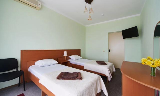 Номера эконом - набор мебели, телевизор, холодильник, санузел на 2 номера, без кондиционера. Номера стандарт - набор мебели, телевизор, холодильник, индивидуальный санузел с душем, есть номера с кондиционером или без кондиционера. Номера комфорт - набор мебели, кондиционер, телевизор, холодильник, электрочайник, индивидуальный санузел с душем