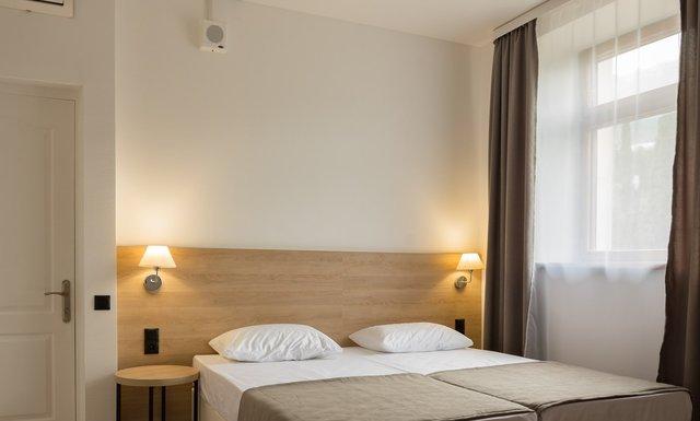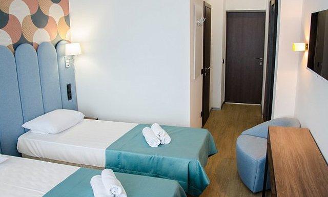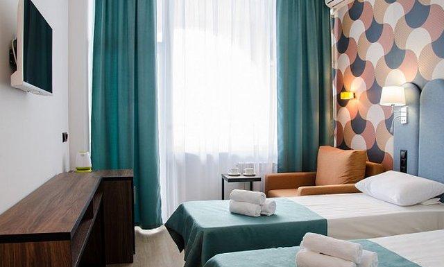 Номера оснащены современной мебелью и новой сантехникой. Категории: Эконом с балконом или верандой, Стандарт без балкона, Стандарт с балконом или верандой, Люкс двухкомнатный, Люкс 3-комнатный, Комфорт без балкона, Комфорт с балконом, Полулюкс, Апартамент, Джуниор сюит, Семейный, Супериор