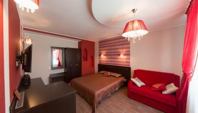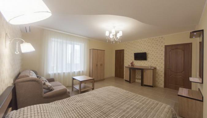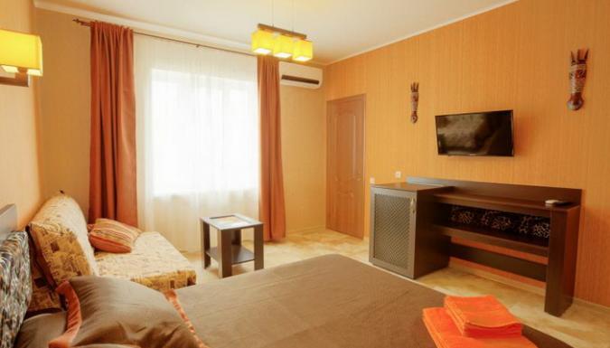 Комфортные номера с авторским дизайном. Каждый номер оборудован кондиционером, холодильником, телевизором, имеет отдельную ванную комнату.
