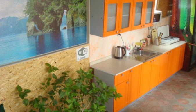 Во дворе кухня для самостоятельного приготовления пищи со всем необходимым инвентарём, включая микроволновую печь. Для отдыха, приема пищи во дворе есть беседка, построенная в восточном стиле, где можно не только отобедать восточные блюда, но и вкусить целебные травы кальяна!