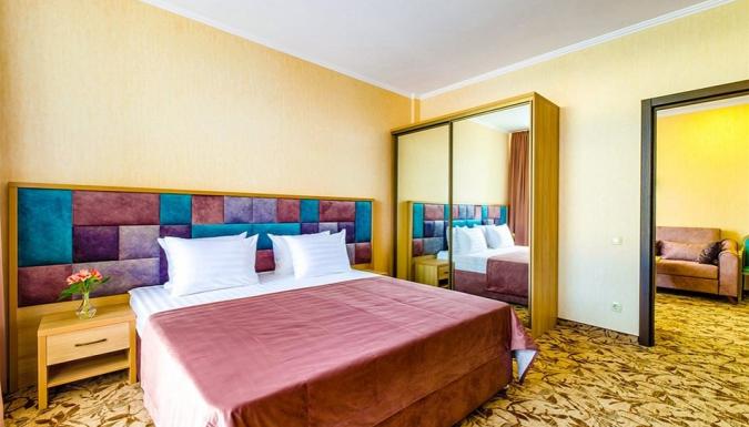 Отдых в отеле «Династия»*** подходит всем категориям туристов - от активных путешественников до гостей, ищущих уединения, умиротворения и вдохновения. Комфортабельные номера (2-4-местные 1-2-3-комнатные со всеми удобствами). Без питания. Есть возможность бронирования с питанием. В отеле есть пиццерия, магазины: продуктовый, «Крымская косметика» и другие, лобби-бар. На цокольном этаже отеля ждет сауна с залом для отдыха и современный спортивный зал с душевыми комнатами. Пляж муниципальный, песчаный, в 50 метрах от отеля - широкая пляжная полоса, пологий берег, ярко жёлтый мелкий песок, мелкое пологое дно и вода, которая очень хорошо прогревается у берега. Есть открытый подогреваемый бассейн. - 13–14