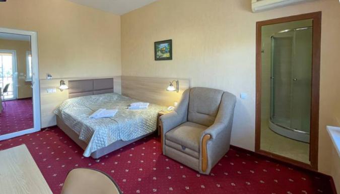 Номерной фонд отеля представляет 15 номеров 2-3-4-местного размещения. Имеется свой ресторан. Также отель работает по системе "Всё включено", можно бронировать туры с питанием. На всей территории бесплатный Wi-Fi. Имеется открытый бассейн, собственный, песчаный пляж в 150 метрах от моря.