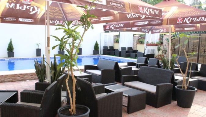 Не территории к услугам отдыхающих бассейн для взрослых и бассейн для детей. Организованы места для отдыха на свежем воздухе. Есть мангал и все необходимое для приготовления шашлыка. На территории гостевого дома есть парковка с круглосуточным видео наблюдением.