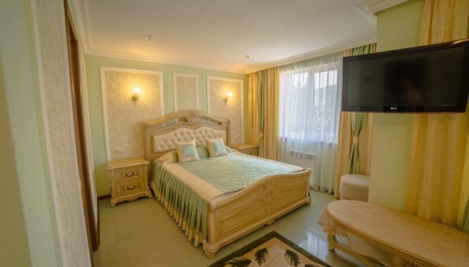 Три корпуса на 198 номеров различных категорий. Все номера укомплектованы набором необходимой мебели (кровати, тумбочки, стол, стулья, вешалка, шкаф, зеркало и бытовой техник - телевизор и холодильник. Есть номера с балконом. Номера категории Эконом с частичными удобствами в номере (умывальник), туалет и душевые на этаже, без кондиционера. Номера категории Стандарт и выше с кондиционерами, индивидуальными санузлами с душем.