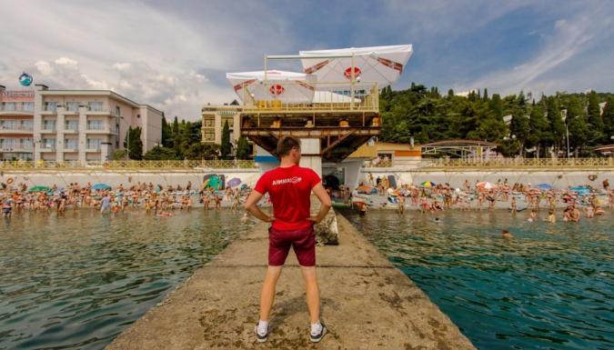 Отель расположен на берегу живописного курортного района Алушты - Профессорского уголка. Отель ориентирован на семейный отдых родителей с детьми по системе «Все включено». Обращаем Ваше внимание: отель расположен в горной местности на высоком берегу (около 90 ступеней к пляжу). На территории отеля большое количество подъёмов и спусков, что важно учесть для гостей с проблемами опорно-двигательного аппарата, семей с маленькими детьми. Собственный мелкогалечный пляж оборудован теневыми навесами, раздевалками, шезлонгами, душем, туалетом (за дополнительную плату). Пляжные полотенца гости получают бесплатно.