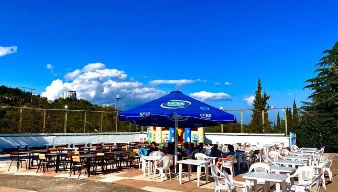 Большой открытый бассейн, спортивная площадка для игры в волейбол, бадминтон и футбол, бильярд, настольный теннис