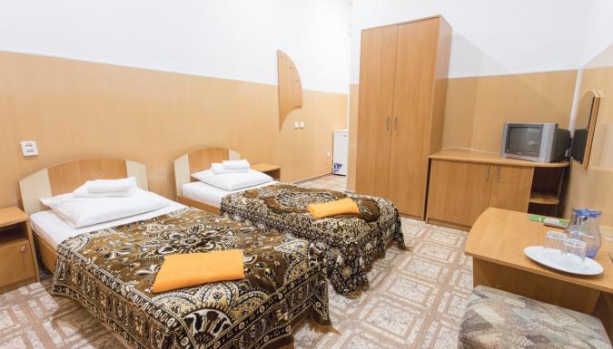 Пять корпусов на 116 номеров различных категорий. В комнатах для отдыхающих установлена комфортабельная мягкая мебель, шкаф, есть телевизор, холодильник. Кондиционер и балкон - не во всех номерах. Сервис в номерах: смена полотенец, смена постельного белья, уборка номера