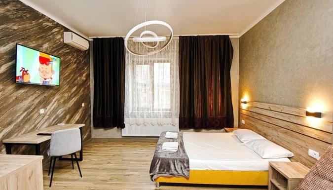 «Диамант» представляет собой современное здание с комфортабельными номерами, в которых есть всё для удобного пребывания гостей: набор мебели, кондиционер, телевизор, холодильник, санузел с душем, туалетные принадлежности, фен.