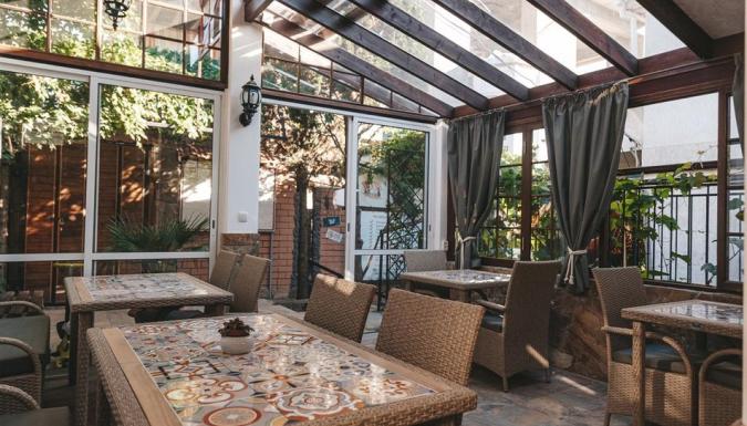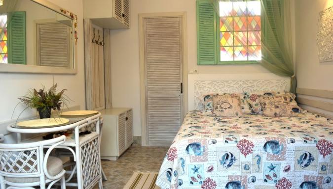 Гостям гостевого дома предлагаются номера «Джаз», «Кино», «Средиземноморский», «Дачный», «Прованс», «Верхняя и Нижняя каюта» и «Каминный». Все номера оснащены балконами, террасами или столиками в беседках возле номера. В каждом из них есть удобная мебель для отдыха, кондиционер, телевизор, душ.