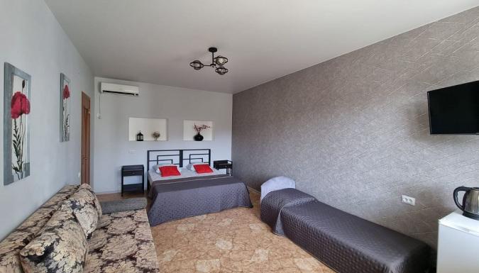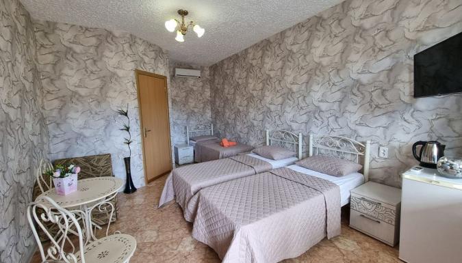Сервер состоит из одного 3-этажного здания. На выбор гостей – 2-3-4 местные номера со всеми современными удобствами и необходимой бытовой техникой: набор мебели, большая двухместная кровать, телевизор, холодильник, кондиционер, санузел. Гости могут воспользоваться мангалом, камерой хранения, кухней общего пользования, детской площадкой. На территории есть бесплатный Wi-fi.