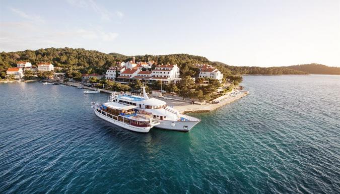 Гостиница расположена в деревне, рядом с 2 озерами (400 м, Большим и Маленьким оба находятся в окружении прекрасных сосновых лесов Температура воды в озерах на 2-4 градуса больше чем в море) Расположен в национальном парке "Мльет" на одноимённом о-ве,который известен своим монастырём, построенным в 12 веке(на о-ве Большого озера). Эта гостиница является местом встречи многих известных художников и политических деятелей. Состоит из главного здания и отдельно стоящего флигеля (pavilion). Хороший отель для уединенного, спокойного и размеренного семейного отдыха.