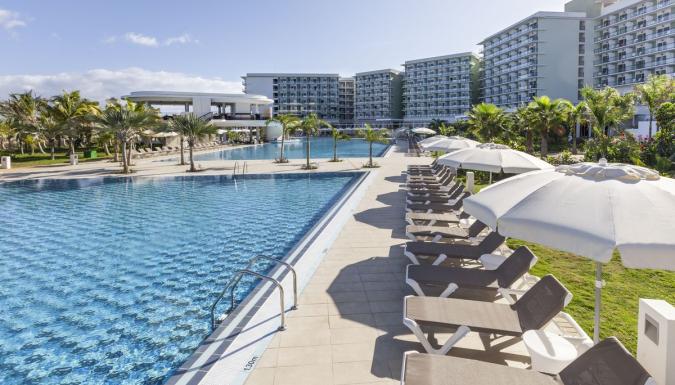 Отель состоит из центрального одиннадцатиэтажного здания и двух зон: East и West. Расположен на первой линии от моря, в нем 6 бассейнов и целый этаж, превращенный в настоящий бульвар с разнообразными развлечениями как для семей, так и для взрослых, а также более 20 баров и ресторанов.