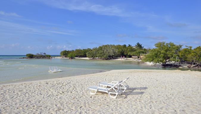В 1 км от острова находится коралловый риф, на котором обитает колония из более чем 5000 фламинго.