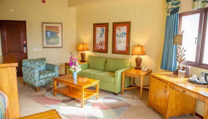 - просторные однокомнатные Suite, рассчитанные на проживание 2 человек и состоящие из спальной комнаты с кроватью King и диваном. Номера с видом на плавательный бассейн или океан;