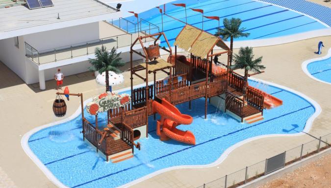 - 2 открытых взрослых бассейна (глубиной 175 см и 80 см); открыты с 09:00 до 19:00