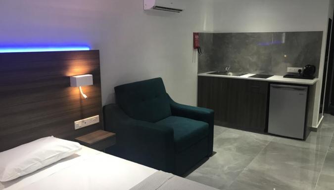- оборудованная кухня (обеденный стол, электрическая плита, мини-холодильник, чайник)