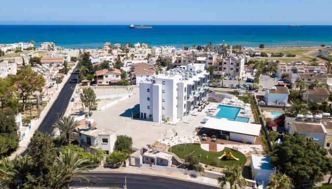 Отель расположен в 15 км от аэропорта, в 7 км от центра города Ларнака, в районе Dekelia Road (окраина Ларнаки), на второй линии, в 150 м от пляжа (через дорогу).