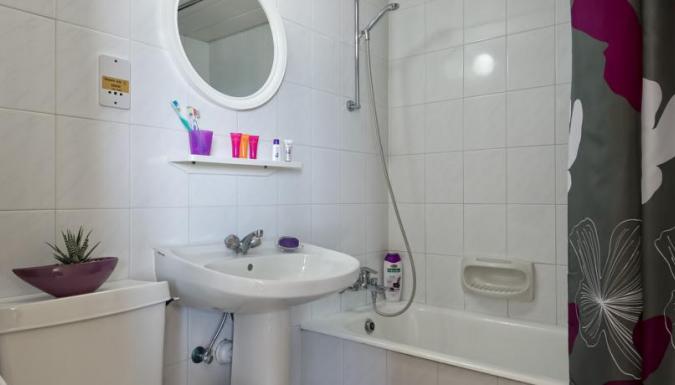 Ванна/душ, туалет, полностью оборудованная кухня (плита с духовкой, холодильник, электрический чайник и тостер), кондиционер, радио, телефон.