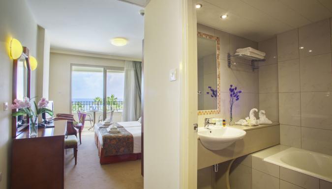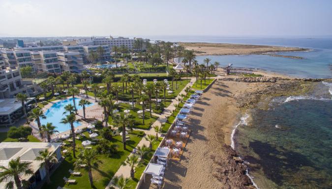 quamare Beach Hotel & SPA – новый, элегантный отель для любителей эксклюзивного отдыха и талассотерапии. Изысканные интерьеры и большой выбор процедур SPA позволят. Вам насладиться каждой минутой отдыха. В отеле:состоит из одного корпуса, в котором расположено 142 номера (62 из них с видом на море).119 Standard Room (27 кв.м, максимальное размещение - 2 взрослых и 1 ребенок или 3 взрослых). 9 Family (48,5 кв.м, максимальное размещение - 2 взрослых и 2 ребенка). Инфраструктура:3 ресторана, бар, 2 бара у бассейна, ТВ-салон, 2 конференц-зала каждый на 200 человек, игровые автоматы, салон красоты, парикмахерская, магазин; массаж, пакет процедур талассотерапии, турецкая баня – за дополнительную плату; сауна, джакузи, багажная комната, прачечная, открытая автостоянка, гараж, аренда автомобилей. В отеле возможен беспроводной доступ в интернет. В отеле расположен единственный в Пафосе салон L’Aqua Spa, который считается одним из лучших на Кипре. Для спорта и отдыха:Для занятий спортом: бассейн, закрытый бассейн (подогреваемый зимой), тренажерный зал, освещаемый теннисный корт, настольный теннис, занятия аэробикой. Досуг: тематические вечера.Детям: детский бассейн, игровая комната, игровая площадка, мини-клуб, детское меню и высокие стульчики в ресторане.Пляж: песчано-галечный пляж. Для гостей отеля зонтики и шезлонги - бесплатно.