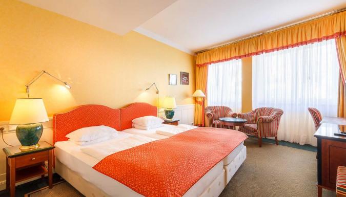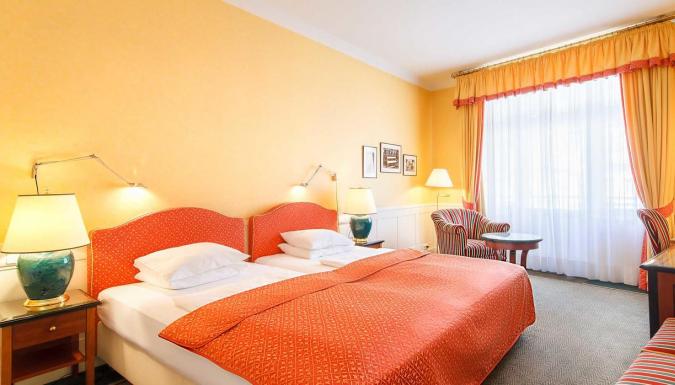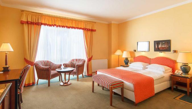 Бар (Пиано-бар с "живой" музыкой даст Вам возможность почувствовать атмосферу настоящего венского кафе с неповторимым ароматом пирожных и коктейлей.), Врач, Гостиная, Закусочная, Лифт, Обмен валюты, Парикмахерская, Прачечная, Ресторан (В ресторане можно насладиться блюдами чешской и интернациональной кухни. В меню ресторана есть диетический стол.), Сейф (Особые условия), Содержание животных (Платно), Условия для инвалидов, Камера хранения, Холл, Химчистка