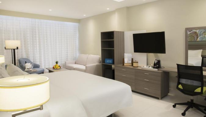 Центральный кондиционер, вентилятор, ТВ, фен, телефон, тапочки, мини-бар, питьевая вода, набор для приготовления чая/кофе, бесплатный Wi-Fi.