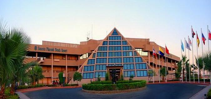 Отель открыт в 1997 году, на территории более 75 000 кв.м. Для удобства перемещения по территории отеля предлагаются электромобили. Кроме основного здания есть одно- и двухкомнатные бунгало, для больших семей. К услугам в отеле: открытый бассейн, закрытый бассейн, кабинет врача по вызову, парикмахерская, услуги прачечной, конференц-зал (на 300 чел.), магазины, обмен валюты, прокат автомобилей, парковка, салон красоты, детский бассейн, мини-клуб (3 - 10 лет). Платно: турецкая баня, сауна, прокат спортивного инвентаря, бильярд, велосипеды, курсы подводного плавания, безмоторные водные виды спорта, настольные игры (залог). Бесплатно: аэробика, джакузи, шоу-программы, баскетбол, дискотека, тренажерный зал, стрельба из лука, настольный теннис, волейбол на пляже, мини-футбол, сквош. Отель представляет собой комплекс зданий: центральный корпус "Melia Pharaon Main", где номера расположены на двух верхних этажах, отдельный корпус около спортивных площадок "Melia Pharaon Sport" и бунгало вокруг бассейна "Melia Pharaon Bungalow".