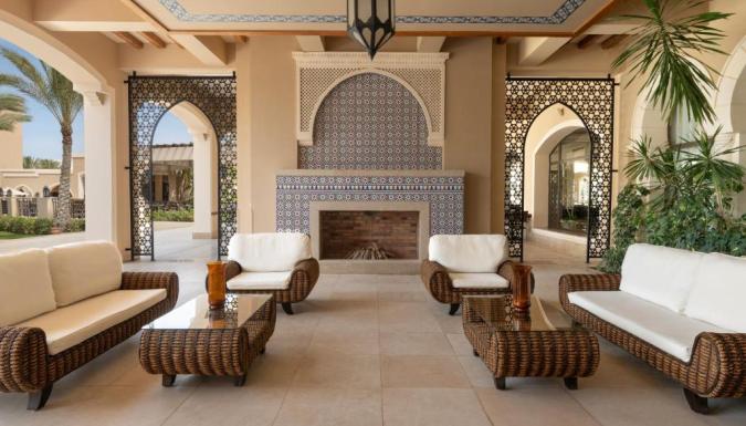 На территории курортного отеля Jaz Oriental, Almaza Bay работает ресторан с обслуживанием по системе «шведский стол» и столиками на открытом воздухе. Из ресторана можно полюбоваться видом на пышный сад и бирюзовые воды Средиземного моря.