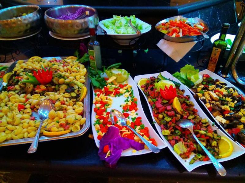 Еда - нам хватало... Не было изобилия, но всё вкусное и свежее. На завтрак лично я кушала омлет, круасаны поливала шоколадом. Были еще блинчики, сухие завтраки с молоком и разные булочки, сыры колбасы. Сам ресторан находится на возвышенности - вид шикарный. А еще здесь самое вкусное кофе, из всех отелей где мы кушали)
