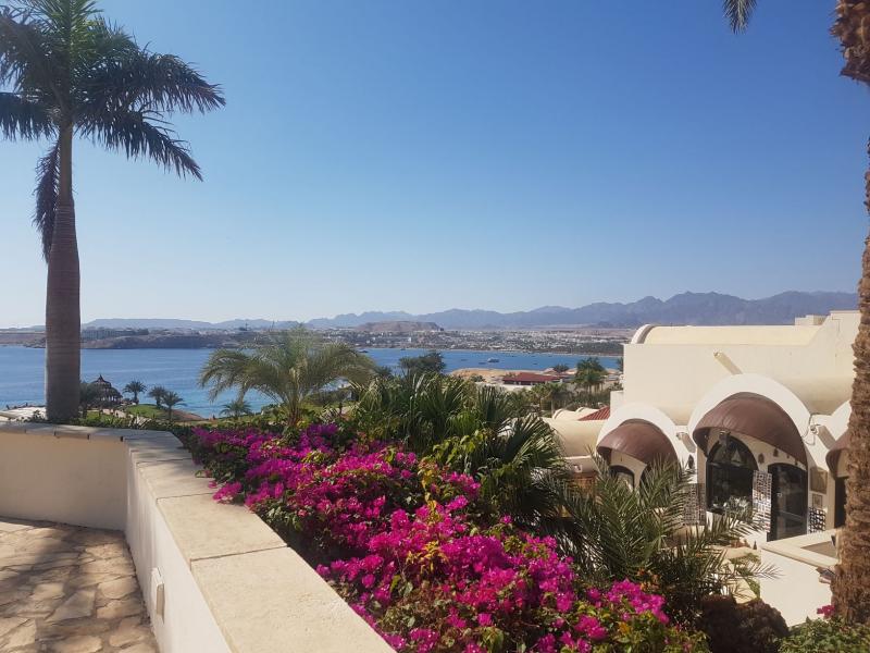 С территории отеля открывается красивейший панорамный вид на Наама Бей. Вид из всех номеров на море. И чем дороже номер, тем красивее вид с балкона у Вас будет. Кстати, все номера абсолютно одинаковые по наполнению и размеру.