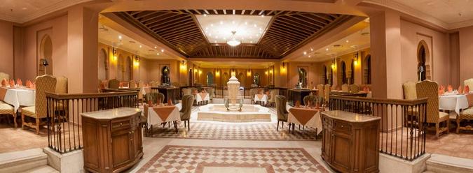 На территории отеля находится 5 ресторанов: Ресторан "Olive Tree" предлагает широкий выбор интернациональной кухни; в ресторане "Al Hamraa", который расположен около бассейна, Вас ждут деликатесы ливанской и марокканской кухни; латино-американский бар-ресторан "Los Amigos" расположен на двух этажах с открытой террасой. Помимо великолепной южно-американской кухни в баре имеется открытый гриль, развлекательная музыкальная программа; также в течение всего дня в отеле работает средиземноморский ресторан "Lagouna" с открытой террасой, предлагающий превосходные блюда, в том числе блюда "из даров моря", а в ресторане "Horizon" Вы найдете вкуснейшую и питательную итальянскую кухню. Главный бар отеля "El Salamlek" с живой музыкой, а также турецкое кафе с гриль-баром на пляже относятся к восточному стилю и предлагают прохладительные напитки и изысканные холодные закуски в течении всего дня. В холле отеля расположен бар, где Вы сможете насладиться любимым напитком в тихой и непринужденной атмосфере.Бизнес-центр предлагает 3 банкетных зала и 4 кабинета для деловых переговоров оснащенных современной аудио и видео техникой. Курортная инфраструктура отеля включает два взрослых бассейна, два детский бассейна и спортивно-оздоровительный центр с парной, сауной, джакузи, массажным кабинетом и фитнесс-центром. Любителей активного отдыха на территории ждет площадка для волейбола, баскетбола и мини-футбола. Также отель имеет два теннисных корта. Вашим детям отель может предложить различные развлечения, детскую библиотеку и площадку. Отель имеет торговую область с 12 магазинами, салон красоты, интернет-кафе. Также отель располагает собственным песчаным пляжем, рядом кораллы. На пляже 2 понтона