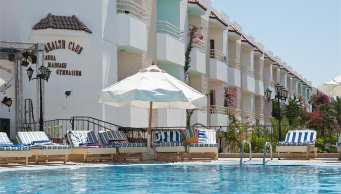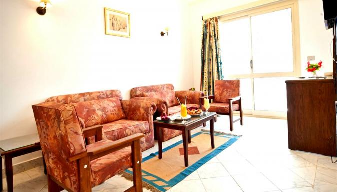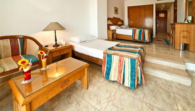 Комплекс 2-этажных корпусов. Всего в отеле 190 стандартных комнат (20 кв. м, макс. 2+1 чел.).