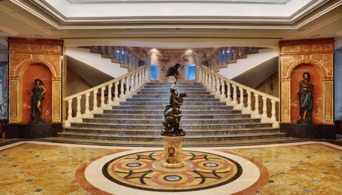 Огромная зелёная территория, окружённая садами и греческими статуями