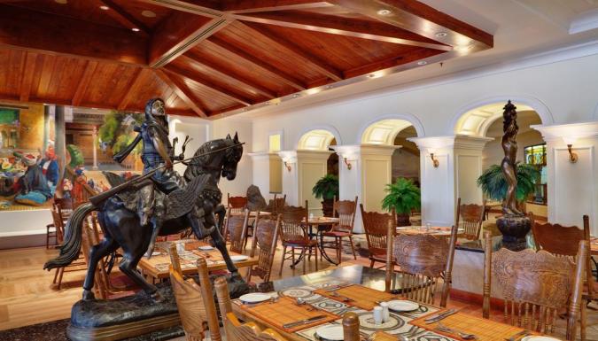 В холле отеля картинная галерея и пруд с экзотическими рыбками