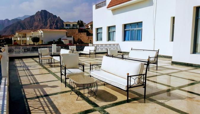 Отель в курортной зоне Dahab, в уединенном месте. Расположен на возвышенности, территория плавно спускается к побережью, много лестниц. Красивые виды, просторные номера, гостеприимная атмосфера. Вариант для семейного отдыха, для любителей водных видов спорта.