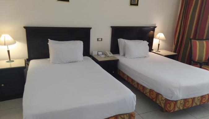 Standard Room (pool or garden view) — 30-40 м2. Однокомнатный номер с видом на территорию отеля. В номере одна двуспальная или две односпальные кровати. Есть номера с французским балконом. Предоставляется только одно дополнительное спальное место — мобильная односпальная кровать. (Есть номера с тремя односпальными кроватями).