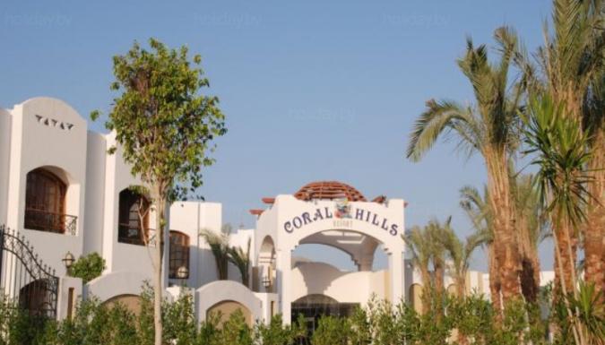 Coral Hills Resort представляет собой комплекс двухэтажных и одноэтажных корпусов, в отеле 100 стандартных и 56 семейных номеров. Формула All Inclusive: завтрак с 07:00 до 10:30. Шведский стол (холодное мясо, сыры, яйца, джемы, выпичка, соки), обед с 13:00 до 14:30 Салатный бар, гамбургеры или пицца, спагетти, цыпленок, рис, BBQ. Картофель Фри, Фрукты, десерт 16:00 – 17:00 Кофе + Чай с бисквитами и др. выпечкой, ужин с 19:00 – 22:00, минеральная вода, кофе, чай, капучино, кока-кола, спрайт, пиво и вино местного производства.