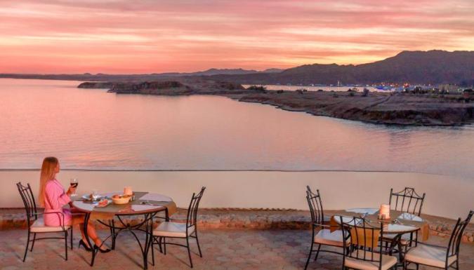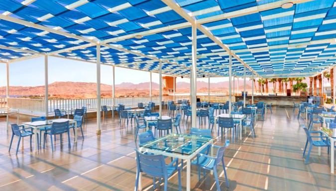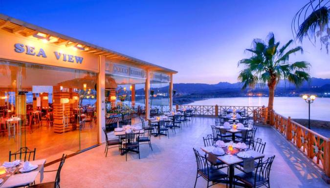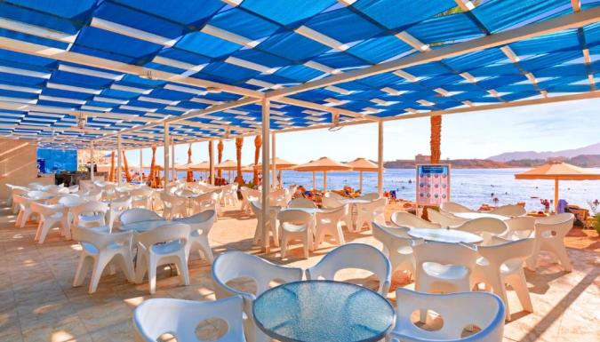 Питание по системе All Inclusive: завтрак, обед и ужин – шведский стол в главном ресторане; закуски в течение дня; «время чая» - чай, кофе, выпечка с 15:00 до 18:00; прохладительные напитки, чай, кофе, вода, вино и пиво египетского производства в ресторане во время обеда и ужина и в барах All Inclusive в часы их работы с 10:00 до 24:00. Отель расположен на высоком берегу, есть лифт на пляж (или лестница)