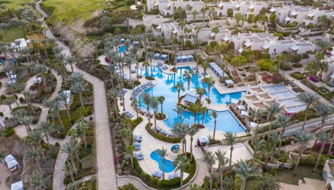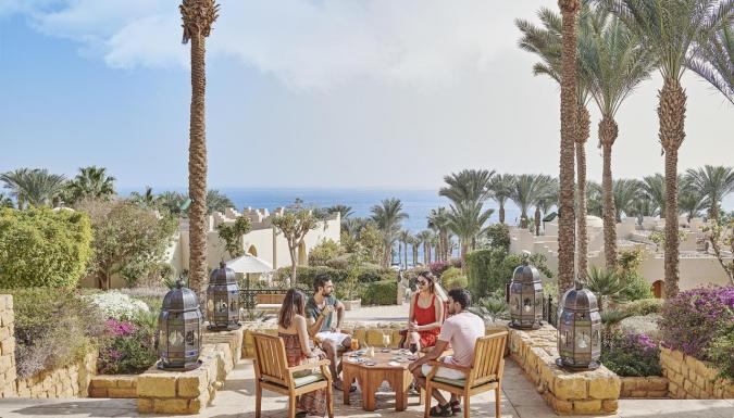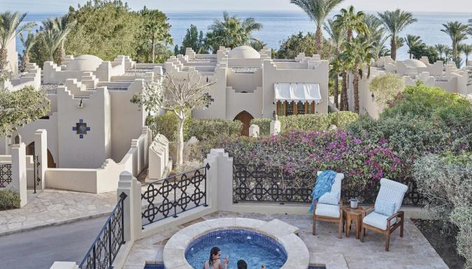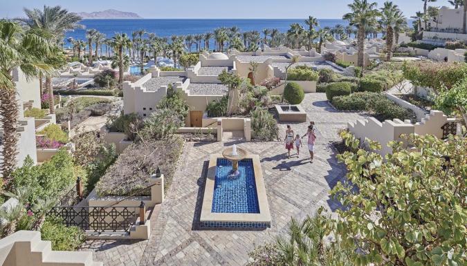 Four Seasons Resort - это один из самых роскошных отелей Египта с развитой инфраструктурой, уютно расположившийся в живописной части Шарм-эль-Шейха, открывшийся в 2002 году, состоит из основного здания и девятнадцати двухэтажных корпусов. По огромной территории отеля курсируют мини-мобили. Резорт напоминает приватную арабскую деревню, в которой все домики распологаются каскадом по горе от пустыни и до моря, что позволяет наслаждаться видом Красного моря из любого уголка отеля. Отель построен в Маританском стиле, ообенностбю этого стиля являются крыши-купола, арочные проемы и приватные дворы с фонтанами. Среди жара пустыни, наш курорт охлаждается бризом Красного моря, а шум фонтанов из двориков наших садов даст настрой на отдых. От самой дороги выстроились 1800 пальм, создовая тропический сад, резорт представляет собой зеленый оазис, неимеющий аналогов в Шарм-Эль-Шейхе и во всем Египте.